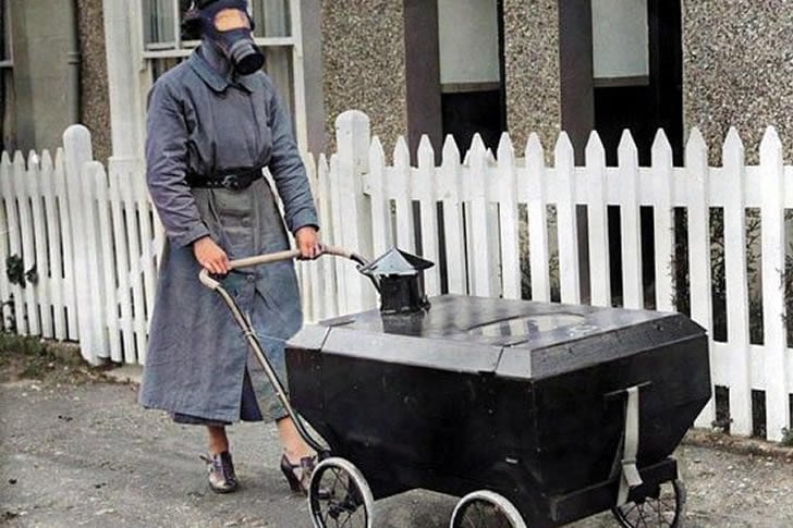 Durante la Seconda Guerra Mondiale, gli inventori britannici crearono un congegno terrificante: una carrozzina a prova di gas. Sembrava una bara metallica mobile con pannelli di vetro. I genitori potevano pompare aria filtrata all’interno per tenere il loro bambino al sicuro dagli attacchi, mentre sembrava che stessero spingendo una tomba robotica.