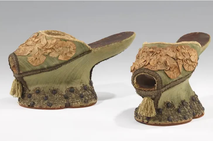 Le chopine erano scarpe con zeppa popolari tra il XV e il XVII secolo a Venezia e in altre parti d’Europa. Originariamente concepite per proteggere piedi e abiti dallo sporco delle strade, gradualmente divennero più alte come segno di ricchezza. Alcune chopine superavano i 20 pollici di altezza, rendendo quasi impossibile camminare senza l’assistenza dei servitori.