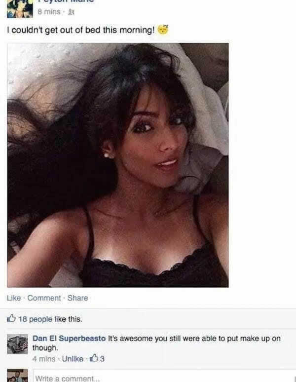 La ragazza affermava di essere ancora bloccata a letto e di apparire favolosa senza sforzo, sottintendendo uno splendore mattutino naturale. Tuttavia, un commentatore di nome Dan-El si è affrettato a far notare che “svegliarsi” con un viso completamente truccato professionalmente è un miracolo che la maggior parte delle persone non ha ancora imparato.