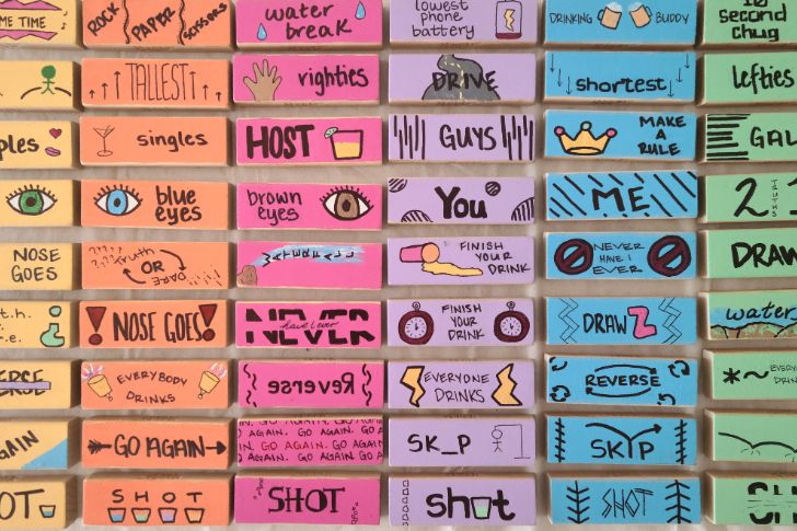 パーティーを大混乱に変える40の爆笑ゲーム #34: ドランクジェンガ Advertisements 通常のジェンガですが、各ブロックには書かれたルールやチャレンジ(真実、挑戦、飲む課題、カテゴリーコール)があり、うまく引き抜かれたときに完了しなければなりません。 Advertisements 前次のページ 身体的な緊張とエスカレートする飲酒タスクの組み合わせが、すべての引き抜きをハラハラするものにします。タワーが最終的に崩壊すると、責任を負うプレイヤーは通常、歓声の中で壮大な罰ゲームの飲み物を飲むことになります。4〜8人に最適です。 Advertisements PREV NEXT PAGE