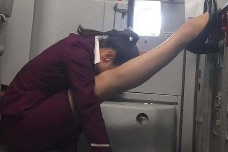このような瞬間は、空で働くことのしばしば見過ごされがちな身体的 demands を明らかにします。長時間立ちっぱなし、狭い空間、そして3万フィート上空で冷静さを保つ必要性から、誰でもリラックスするための創造的な方法を見つけざるを得ないでしょう。この印象的な曲芸は、文脈の中では面白いものの、客室乗務員が単なる笑顔の顔以上の存在であること、つまり適応性があり、回復力があり、そしてどうやら非常に体が柔らかいということを静かに思い出させてくれます。