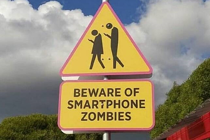 もし、人々がスマホから目を離せないことにイライラするなら、この標識はきっと気に入るでしょう。ある地域では、「スマホゾンビに注意」という標識がドライバーに警告しています。これはおそらく、デバイスに夢中になって周囲に注意を払っていない歩行者に、ドライバーが気をつけるようにユーモラスに注意を促すものです。この標識は、ユーモアを添えるだけでなく、ドライバーの注意を効果的に引きつける役割も果たしています。