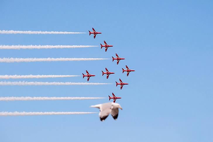 それは鳥です、それは飛行機です、そして、飛行機のように見える鳥です!冗談はさておき、この写真は今日見た中で最も楽しいものの一つかもしれません。鳥が飛行機と絶妙に重なり、まるで鳥が飛行機の代わりになっているかのように見えますが、なぜかこの写真は完璧に成り立っています。