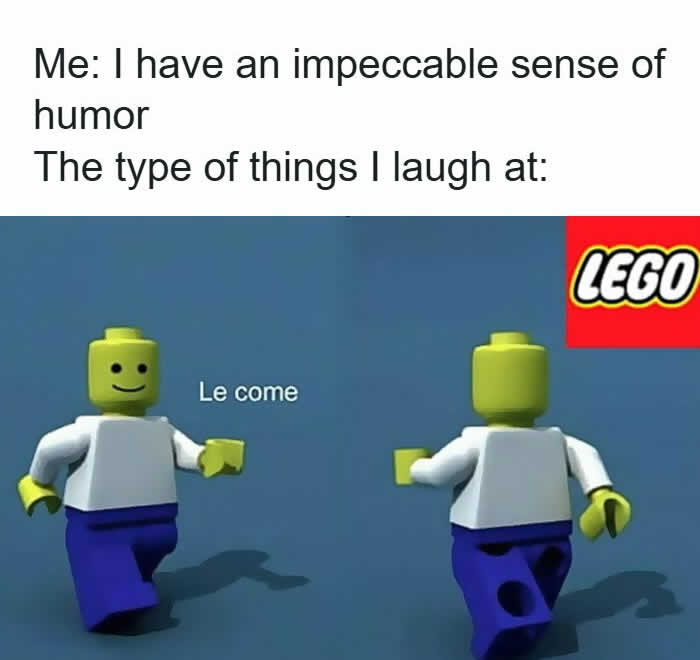 その人物が消えると、ラベルは「Lego」に変わります。これは巧妙なひねりです。人気のおもちゃブランドの名前であると同時に、ユーモラスに「Le come」の反対でもあるからです。このジョークはシンプルで、くだらなくて、楽しくランダムです。まさにジェネレーションZの視聴者の心に響く、風変わりなユーモアの一種です。