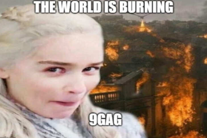 このミームは、ドラマ『ゲーム・オブ・スローンズ』のデナーリス・ターガリエンが、背後で燃え盛るキングズ・ランディングを前に罪悪感を抱いている様子と、「THE WORLD IS BURNING」(世界が燃えている)というテキストが特徴です。これは、彼女のキャラクターが狂気に陥り、ファンを裏切った物議を醸した最終シーズンを完璧に皮肉ったものです。このミームは、混沌とした現実世界の出来事や、自分がうっかり小さな災害を引き起こしてしまった時によく使われます。