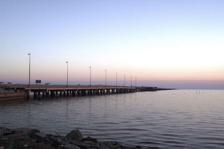 こちらもアメリカにある橋で、ルイジアナ州のポンチャートレイン湖にかかることから、ポンチャートレイン湖コーズウェイと呼ばれています。全長38.42kmになる有料道路です。片道でほぼフルマラソンできると考えればとんでもない距離なのが分かりますね。通行料は片道3ドルで、北側マンデビルからの通行時のみ徴収されます。以前は1ドル50セントで橋の両方から徴収されていましたが、混雑緩和を目的として片側だけで3ドルに変更されました。