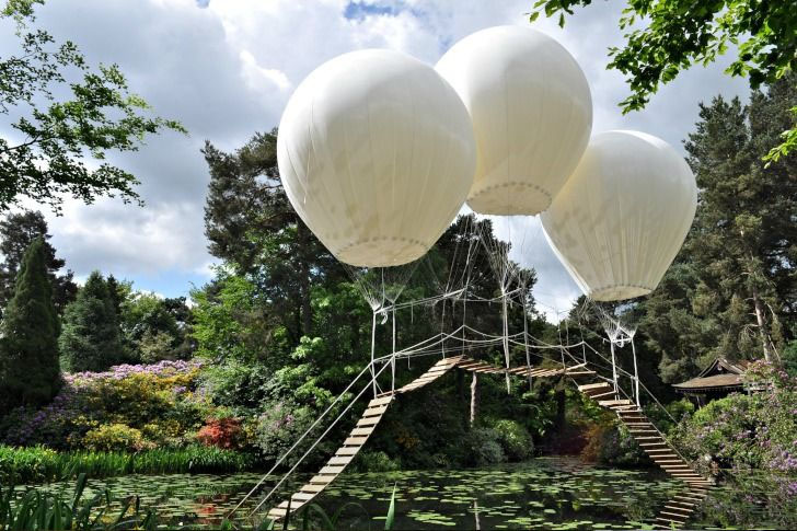 2012年、フランスのアーティスト、オリヴィエ・グロステート(Olivier Grossetête)は、まさにそんな夢を現実に変えようとしました。彼が制作したのは、3つの巨大なヘリウム風船によって宙に浮かぶロープブリッジ――「ポン・ド・シンジュ橋」。理論上は人の重さにも耐えられる構造ですが、この橋は実際に渡るためというより、人々の目を楽しませる芸術作品として作られました。おとぎ話に出てきそうなその光景を目にすれば、大人であっても、思わず童心に返ってしまうような温かい感覚を覚えることでしょう。