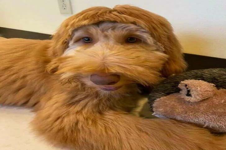 このドゥードルは、悲惨な髪型にされたにもかかわらず、まだかわいい。しかし犬にとって幸運なことに、彼は何も知らず、ただ無邪気におもちゃに寄り添って喜んでいる。
