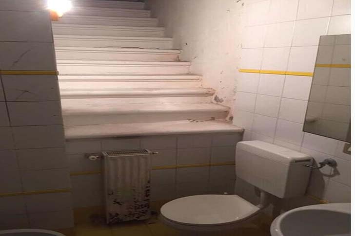 古びたユニットバスとその中にある謎めいた説明のつかない階段ほど不気味なものはありません。さらに悪いことに、この階段はひどく古びているだけでなく、奈落の底まで続いているのです。この階段はかつてどこにつながっていたのでしょうか、そしてなぜトイレの真横に階段を作ろうと思ったのでしょうか?この奇妙な写真には多くの疑問がありますし、おそらく答えが出ることはないでしょう。
