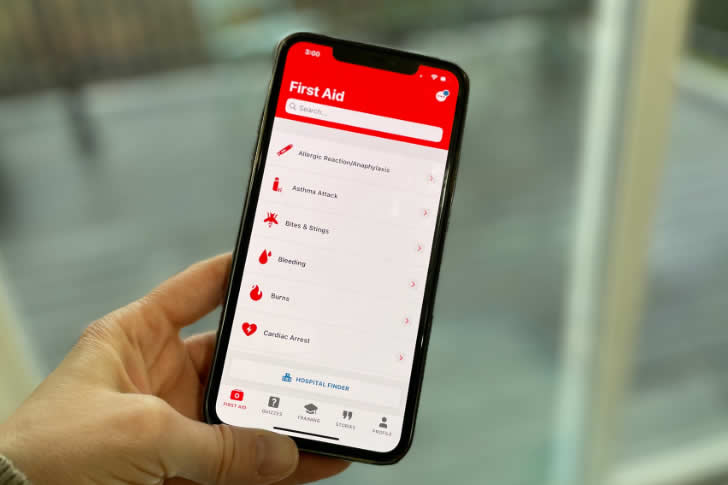 38. 휴대폰에 적십자 응급처치 앱을 다운로드하세요. CPR 수행 방법, 심장마비 환자 돕는 방법 등에 대한 그림이 포함된 광고 없는 설명이 있습니다.