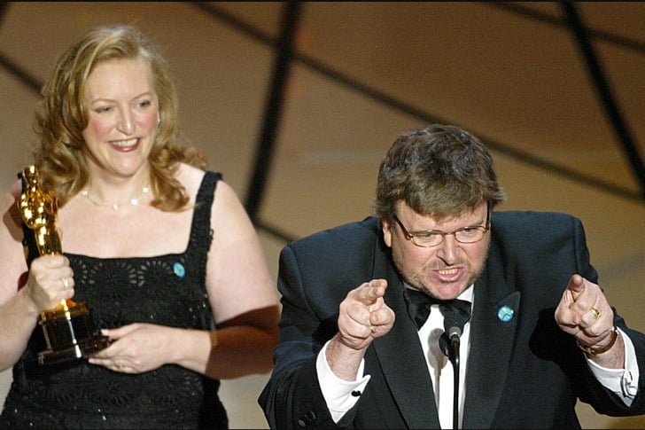 마이클 무어가 영화볼링 포 콜럼바인으로 오스카상을 수상하면서 무대 위에서 이라크 전쟁에 대해 격렬하게 비판했습니다. 홀 전체에 야유가 터져 나왔고, 환호와 뒤섞여 혼란스러운 공방이 벌어져 그의 연설 일부가 묻혔습니다.