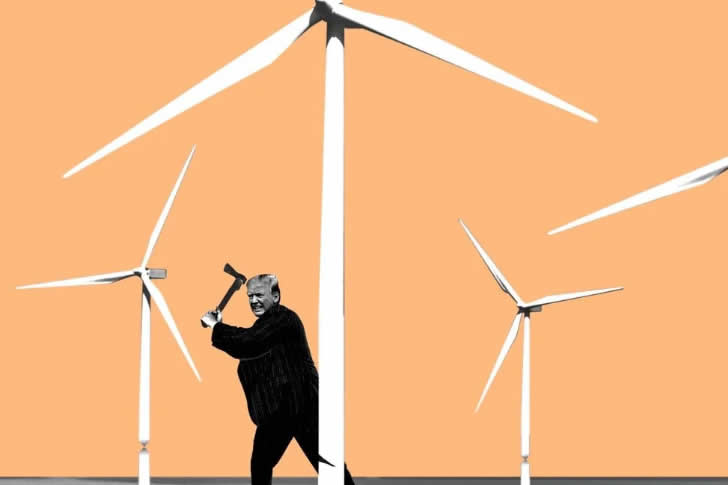트럼프의 풍력 에너지에 대한 오랜 혐오는 2025년 해상 풍력 발전소를 “위험”하고 “풍차가 고래를 미치게 한다”고 주장하며 새로운 최저점을 기록했습니다. 그는 캠페인 스타일 행사에서 이를 반복하며 새로운 설치를 중단하겠다고 맹세했습니다. 이는 그의 더 광범위한 화석 연료 추진과 연결되었지만, 해양 생물학자들이 좌초를 선박 충돌 및 기후 요인 탓으로 돌리며 반박한 고래 주장은 광범위한 조롱을 불러일으켰습니다.