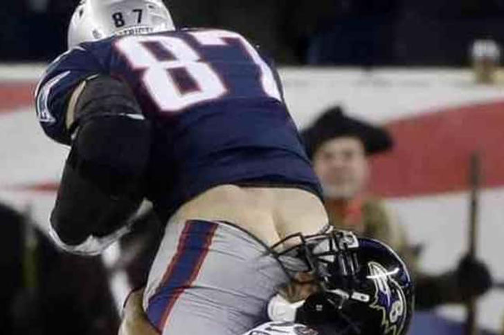 그러다가 이런 일이 벌어집니다: 한 선수가 상대방의 엉덩이에 너무 가까이 다가갑니다. 다행히도 튼튼한 헬멧은 머리뿐만 아니라 이런 순간들의 존엄성도 지켜줍니다. 강렬하고, 때로는 어색한 스포츠의 이면을 엿볼 수 있는 재밌는 장면입니다. 바로 그 점이 미식축구를 그토록 재미있게 만드는 이유이기도 하죠!