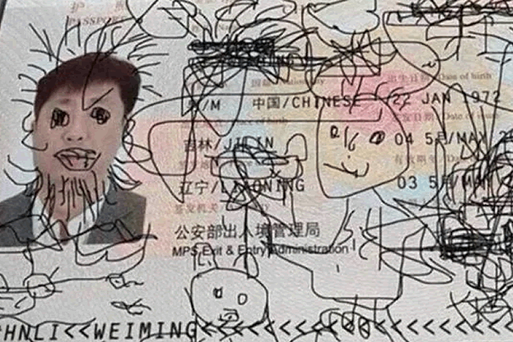 Si vous laissez des documents importants traîner négligemment, vous devriez vous attendre à ce que vos enfants en fassent quelque chose. Cet homme aurait probablement dû mieux cacher son passeport, car ses enfants ont décidé d’en faire leur toile personnelle.