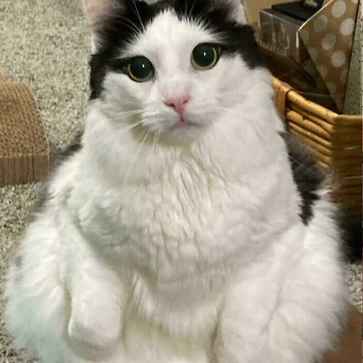 Este gato dominou a arte de ser adorável. Talvez ele saiba que este é o seu melhor ângulo e é por isso que está posando para a câmera assim. Ele quer que o mundo veja como são fofas as suas patinhas quando as coloca contra a pelagem do seu corpo. Este gatinho engraçado e fofo parece bonito e puro ao mesmo tempo.