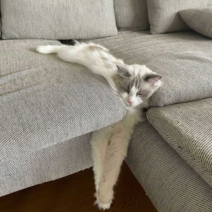 Il semble que le canapé soutienne suffisamment le chat pour qu’il soit à l’aise, tout en lui laissant suffisamment d’espace pour se détendre et se sentir libre. Ce choix unique d’endroit pour la sieste souligne l’individualité de nos amis félins et leur capacité à trouver du confort dans les endroits les plus inattendus.