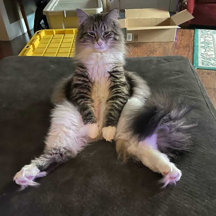Regardez simplement l’air arrogant sur le visage du chat. Il ne se soucie pas de faire du « manspreading », tant qu’il est confortable. Le plus drôle serait que ce soit en fait une chatte qui fasse du « manspreading » !