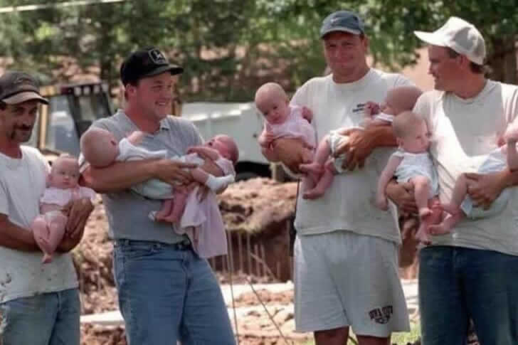 Até mesmo os trabalhadores da construção que estavam construindo a nova casa da família tiraram um tempo para interagir com os bebês. Na verdade, há fotos desses trabalhadores segurando e brincando com as crianças durante os intervalos.