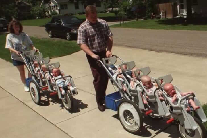 Ver um carrinho projetado para gêmeos é bastante comum, mas os McCaughey precisavam de algo muito mais incomum — dois carrinhos, cada um capaz de carregar quatro bebês. Esses carrinhos de quatro lugares eram diferentes de tudo que a maioria das pessoas já havia visto.