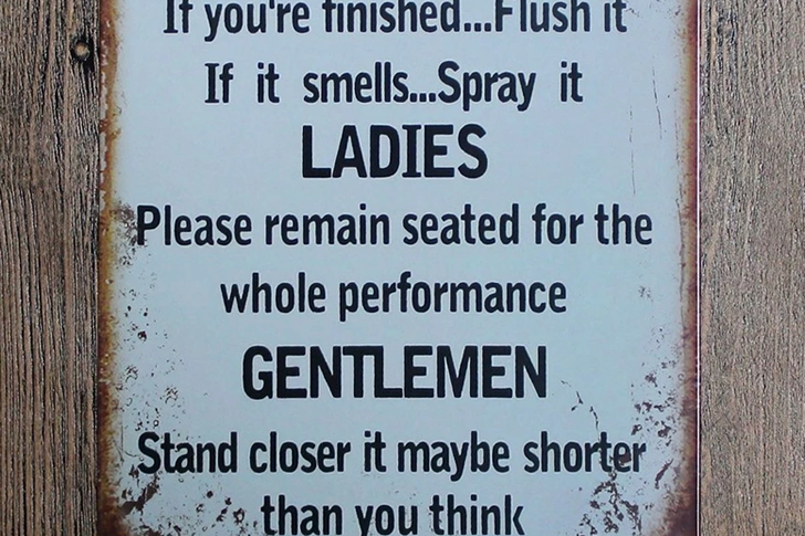 Voici un autre panneau astucieux qui serait parfait pour les parents ou les restaurants. Il explique efficacement comment utiliser les toilettes correctement, mais avec une touche d’humour incisive. Le panneau couvre beaucoup de points, mais la partie initiale déclare : « Si vous levez le siège… Baissez-le. Si c’est vide… Remplacez. Si vous ratez… Essuyez. Si vous avez fini… Tirez la chasse. Si ça sent… Vaporisez. » Ce sont des règles de salle de bain sensées, mais la deuxième moitié du panneau va encore plus loin.