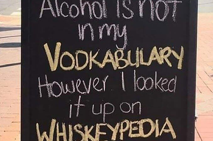 Si vous n’êtes pas un fan de jeux de mots, cette pancarte pourrait bien vous convertir, et si vous les appréciez déjà, vous allez vous régaler. Ce message semble être affiché dans un bar et il dit ceci : “L’alcool n’est pas dans mon Vodkabulary. Cependant, je l’ai cherché sur Whiskeypedia et j’ai appris que si tu bois trop, c’est probablement Tequilya.” C’est un jeu de mots astucieux.