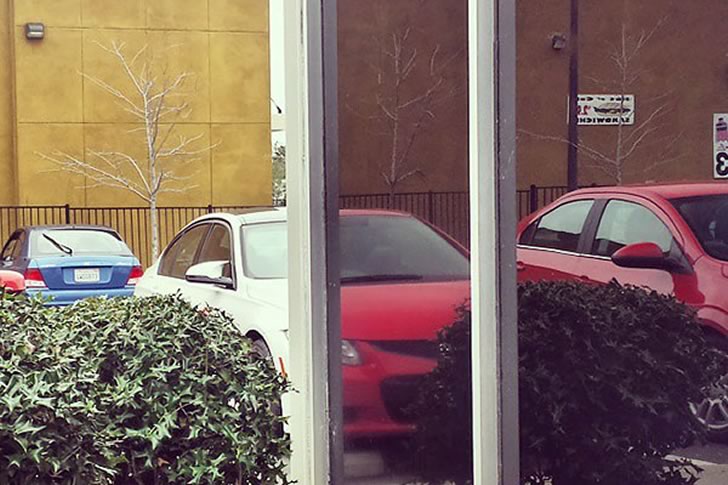 At first glance, this image may appear confusing, almost like an editing trick. However, it’s simply a brilliant example of timing and perspective. A red car, parked in just the right position, is reflected so precisely in the building’s window that it seems to be sliced in half and merged with a white car parked beside it. The symmetry of the reflection and the placement of the cars creates a surreal illusion that makes you look twice.