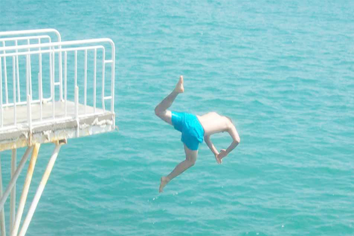 Está claro que esta pessoa não tem futuro no mergulho olímpico. Mas o que ele tem reservado é um grande e doloroso mergulho de barriga. Saltando daquela altura, o resultado será bastante desconfortável. No entanto, o desconforto dele nos dá algo para rir, transformando seu azar em uma foto engraçada — infelizmente para ele, porém!