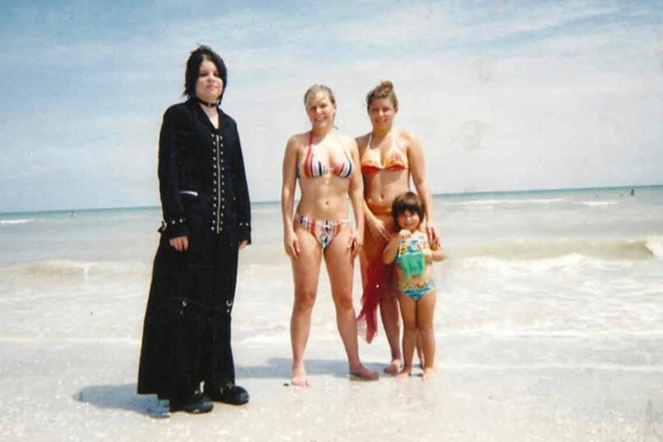 Não é só uma fase, mãe! Mas talvez fosse mais sensato para essa jovem entusiasta gótica encarar a realidade e abandonar o visual todo preto na praia. Pensando bem, é difícil imaginar uma escolha de roupa mais desconfortável sob o sol escaldante!
