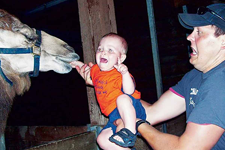 Qual expressão você acha mais hilária? A do pai ou a do bebê? Não temos certeza se é um cavalo ou um camelo, mas de qualquer forma, parece muito feliz com seu lanche delicioso recém-descoberto. A gente entende: as férias podem ser bem caras. Mas, sinceramente, alimentar seus filhos com animais definitivamente não é uma boa maneira de economizar dinheiro.