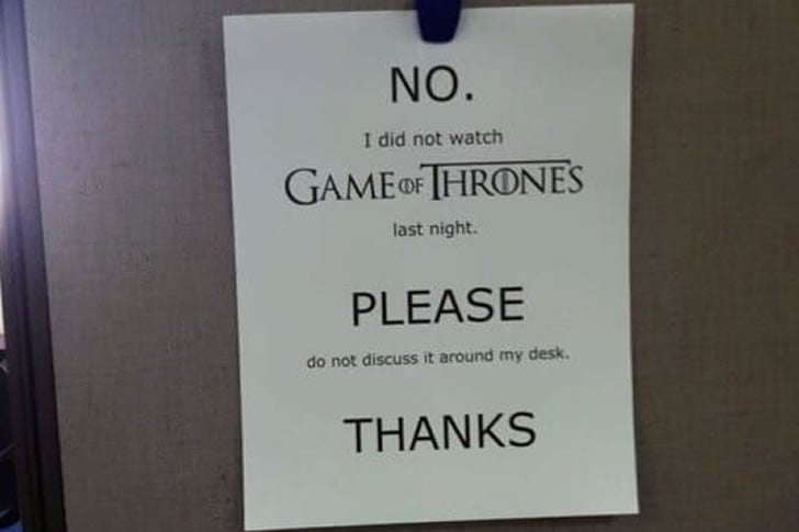Com a popularidade de séries como Game of Thrones, evitar spoilers tornou-se um desafio comum no escritório.