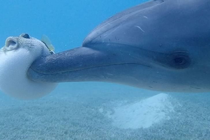 A imagem atinge um equilíbrio caprichoso entre o absurdo e a maravilha biológica. Embora o inchar seja um mecanismo de defesa destinado a deter predadores, este golfinho parece mais divertido do que dissuadido. Cientistas até observaram golfinhos a manusear cuidadosamente baiacus, possivelmente pela ligeira euforia induzida pela toxina que produzem. Quer seja isso que está a acontecer aqui ou apenas uma interação brincalhona que se tornou estranha, uma coisa é certa: este instantâneo é puro ouro da comédia subaquática.