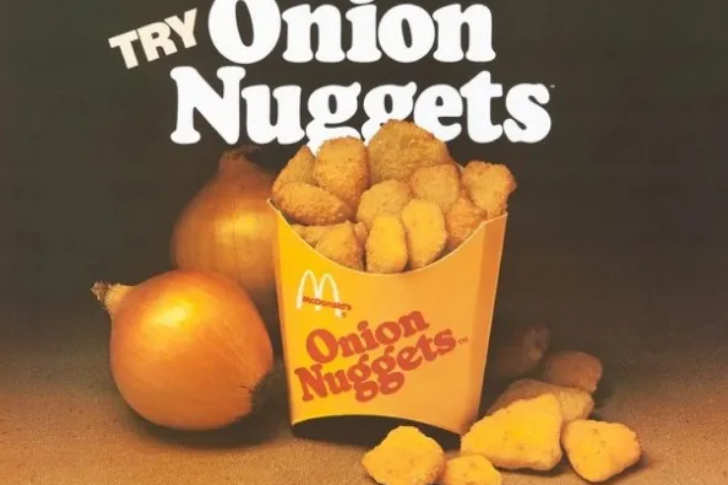 McDonald’s Zwiebel-Nuggets waren diese genialen kleinen frittierten Happen, die aus echten Zwiebelstücken hergestellt wurden. Sie hatten die gleiche Form wie Chicken-Nuggets, aber im Inneren einer super knusprigen goldenen Panade platzte sie förmlich vor süß-würzigem Zwiebelgeschmack – sie hatten diesen perfekten Knusper außen und eine zarte, geschmackvolle Zwiebelschmelze innen, die sie unwiderstehlich machte! Von den 1970er bis in die 1980er Jahre waren sie ein fester Bestandteil der Speisekarte; wir bettelten unsere Eltern um eine Beilage bei Fahrten durch den Drive-thru oder nach der Schule, tunkten sie in Ketchup oder spezielle Sauce, während der heiße Dampf entwich und das Auto mit diesem unwiderstehlichen Aroma erfüllte. Sie waren einfacher zu essen als unordentliche Zwiebelringe, ohne zähe Außenschichten, und die Portion war großzügig genug zum Teilen (obwohl wir es selten taten). Familien stritten sich um die letzten paar, und sie verschwanden immer zuerst vom Tablett. Dann nahm McDonald’s sie leise aus dem Sortiment und ersetzte sie durch Standard-Zwiebelringe, die nie ganz an die Bequemlichkeit und den Geschmack der Nuggets heranreichten.