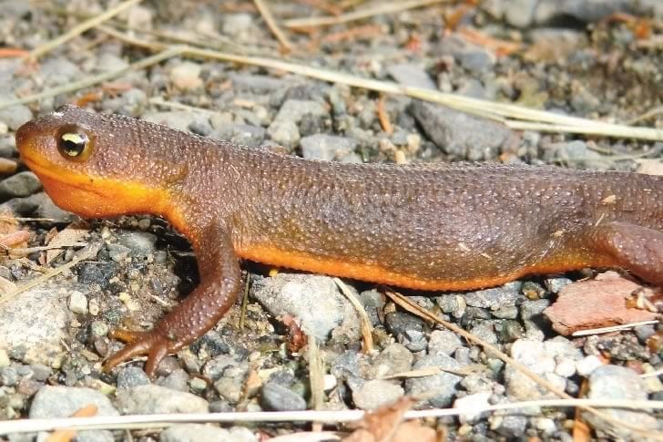 A salamandra-da-califórnia é um anfíbio venenoso que habita a costa oeste dos Estados Unidos. Tem as costas pretas e o abdómen de um vermelho vivo, assemelhando-se à salamandra-de-barriga-vermelha japonesa. Quando atacada por um inimigo, liberta uma toxina poderosa chamada tetrodotoxina, a mesma que se encontra no baiacu, através das verrugas nas costas, por isso é preciso ter cuidado mesmo ao tocá-la.
