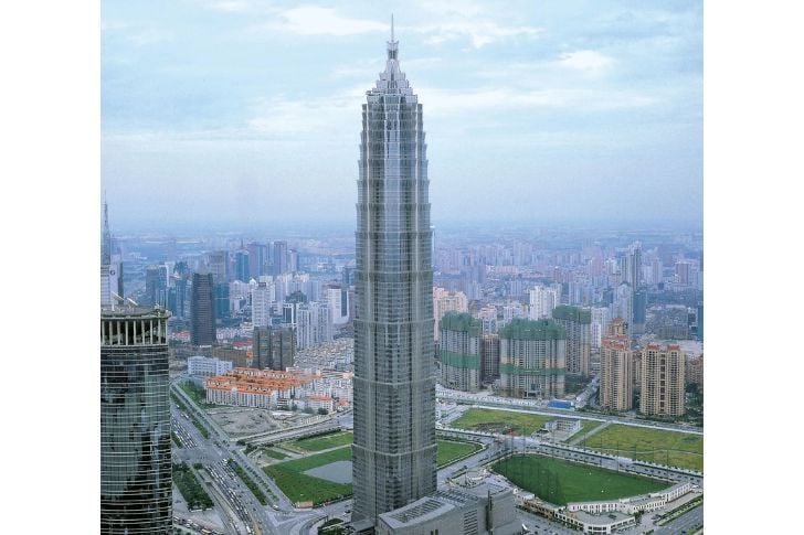 Um clássico do horizonte de Xangai, esta torre de420,5 metroscom88 andaresfoi concluída em1999emXangai, China.