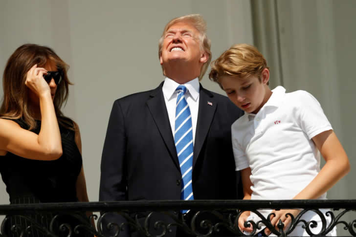 Em 2017, Trump olhou diretamente para o eclipse solar sem proteção ocular por vários segundos, apesar dos repetidos avisos de assessores e especialistas. Fotos capturaram o momento arriscado, gerando preocupação imediata sobre possíveis danos aos olhos.