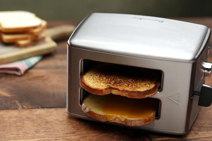 Esqueça sua torradeira comum – esta foi projetada exclusivamente para sanduíches de queijo grelhado. Com cestos especiais para manter a bagunça pegajosa contida, ela permitia torrar sanduíches de queijo sem tocar em uma panela. Começou como uma ideia inovadora de cozinha, mas rapidamente encontrou apoiadores que queriam sanduíches quentes com o toque de um botão.