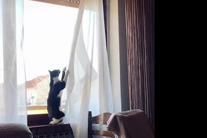 Cat Pulls Down Curtains Using Smart Home App