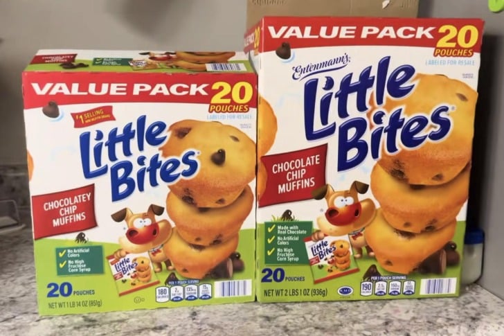 Shrinkflation and skimpflation all in the same packaging update. Still 20 pouches in the “value pack” but now the pack is only 1lb 14 oz instead of 2lbs 1oz. Also, not enough chocolate to call them “chocolate chip muffins,” they have to use “chocolatey” as the descriptor, and removed “made with real chocolate chips” from the green square.