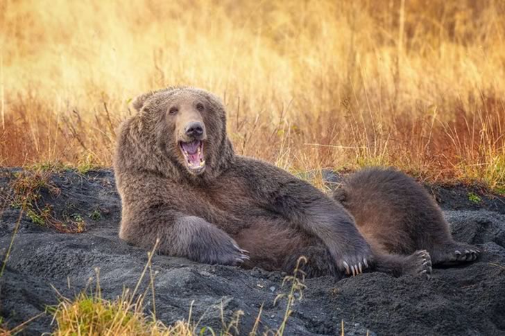 What makes the photo even funnier is the contrast between the bear’s massive, wild presence and the oddly human-like posture it’s taken. There’s a carefree charm to its expression, as if it has no worries in the world and knows how to enjoy life to the fullest. Capturing such a candid moment reminds us that animals, too, have their lighter, funnier sides—and they’re not afraid to show it.