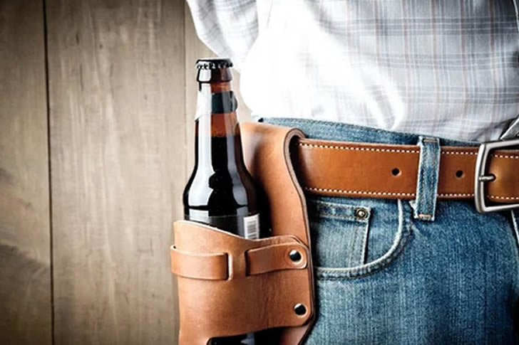 Yes, someone made a leather beer holster you wear on your belt, like a Wild West gunslinger—but for beverages. Aimed at tailgaters and backyard BBQ warriors, it promised hands-free beer access and rugged party vibes. Crowdfunding campaigns across various platforms funded similar variations on this drunken cowboy dream.