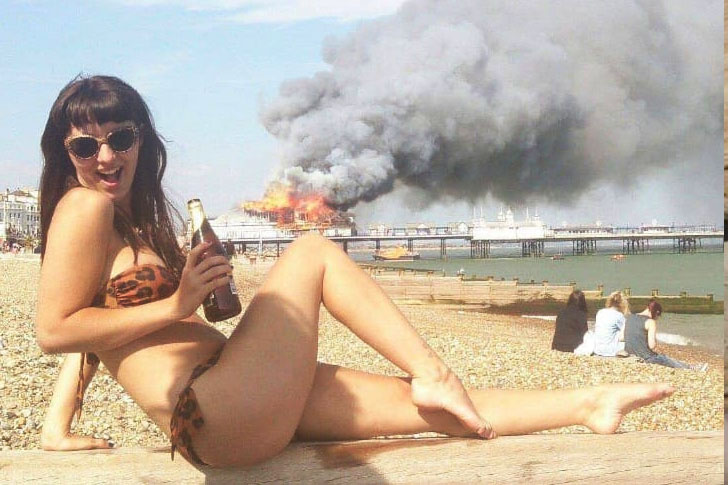 This gutsy gal may be pioneering a new fad – “Disaster Diva Selfies”. With our selfie obsession, we’d probably snap one mid-alien invasion. Hats off to her for keeping herself toasty yet un-toasted, maintaining safe distance from the inferno. Chilling, grinning, beer-sipping, she’s safe. But girl, you better dial 911 before you turn extra crispy!