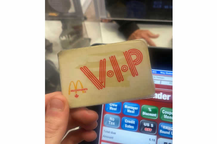 Today, an elderly customer walked into McDonald’s flashing a VIP card—and no, it wasn’t just any card, it was their special golden ticket to burger bliss! This card screams “longtime fan” and probably unlocks secret fries and timeless smiles. It’s a reminder that some love stories last decades — especially the ones with fries, shakes, and a side of nostalgia.