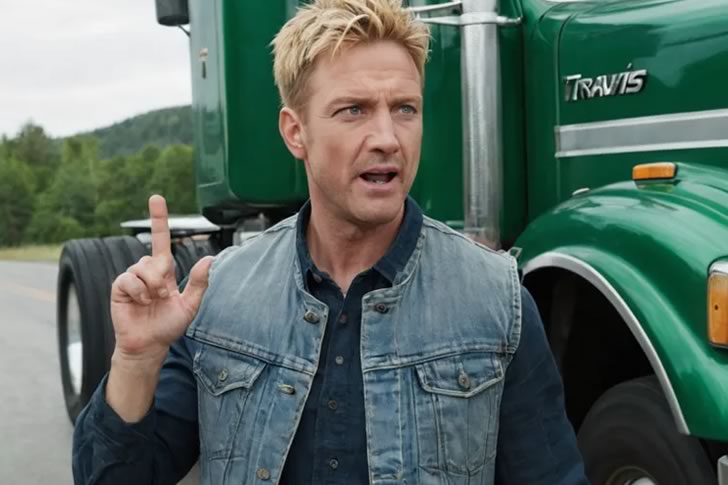 Seeing his friend’s failed attempt to provoke a reaction, Travis couldn’t resist jumping in. He exaggerated the sound of roaring engines, trying to mock the trucker’s massive vehicle in a childish, over-the-top display. “Bet this beast of yours drinks more than you!” he shouted, hoping his attempt at humor would stoke the flames. But the effort felt hollow, as if he was forcing it. His voice cracked as he tried to sound intimidating, and it only made the whole scene feel more awkward.