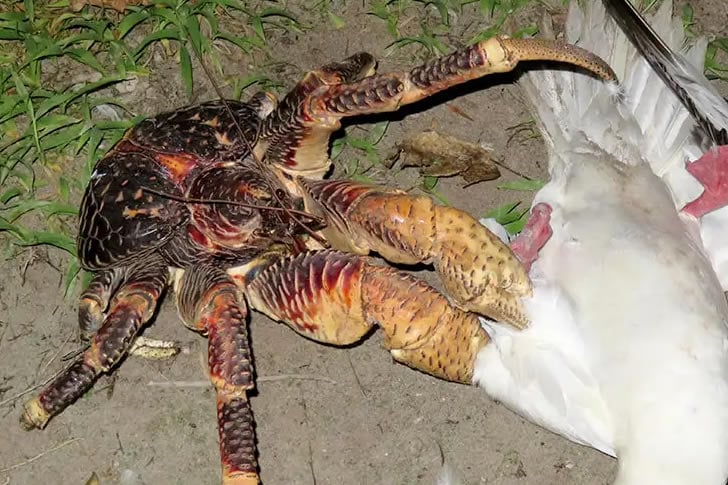 Sie suchen auch nach Nahrung und nutzen dabei Heimlichkeit und Stärke, um andere Tiere zu übertreffen. Ihre Fähigkeit, vertikale Flächen zu erklimmen und verschlossene Nahrungsquellen zu öffnen, macht sie zu wahren Überlebenskünstlern. In Inselumgebungen mit begrenzten Ressourcen gedeiht der Kokosnusskrebs, indem er teils Einbrecher, teils Grobian und ganz Genie ist.