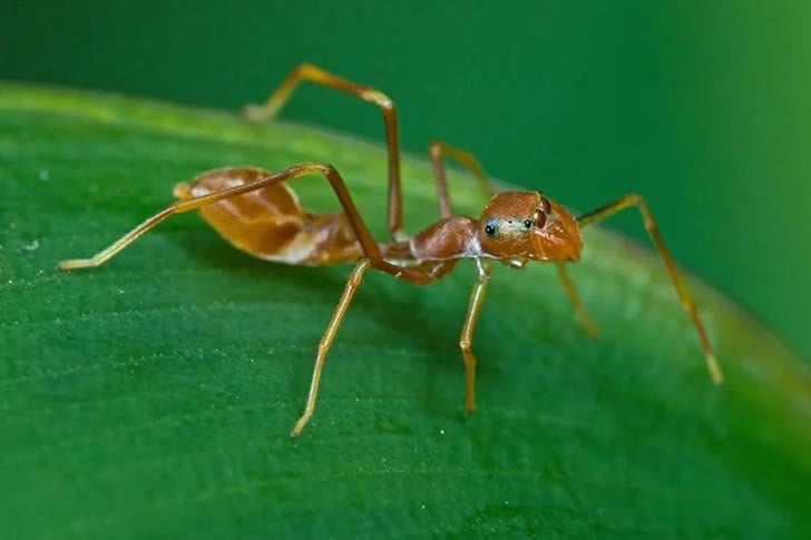 Manche Spinnen haben sich so entwickelt, dass sie Ameisen zum Verwechseln ähnlich sehen – bis hin zu ihrer Körperform, ihren Bewegungen und dem wedelnden, antennenähnlichen Bein. Warum? Weil Ameisen aggressiv sind und den meisten Raubtieren schrecklich schmecken. Indem sie Ameisen nachahmen, vermeiden diese Spinnen, gefressen zu werden, und schleichen unentdeckt durch Kolonien.