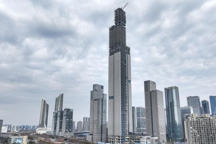 This 416.6-meter tower with 88 floors was completed in 2025 as a new centerpiece for Nanjing, China.