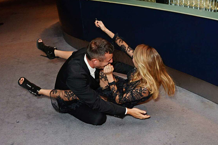 As they untangled themselves, their spontaneous laughter and good spirits served as a delightful reminder that fashion’s finest can embrace the unexpected with grace. This charming mishap between model and designer was the perfect blend of high fashion and high spirits, making it one of the night’s most talked-about moments.