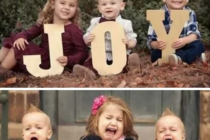 Die Eltern hatten eine brillante Idee – jedem Kind einen Buchstaben geben, um „JOY“ zu buchstabieren und ein herzerwärmendes Weihnachtsfoto zu schießen. Was konnte schon schiefgehen? Anscheinend alles. Die Kinder brachen im selben Moment in einen gleichzeitigen Wutanfall aus, als sie auf den Bürgersteig gesetzt wurden.