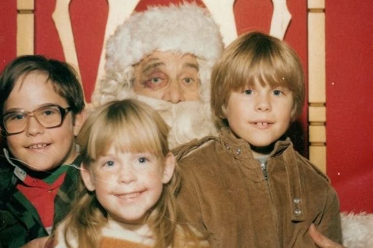 Die Kinder mögen verwirrt gewesen sein, aber auf dem Foto ist klar zu erkennen, dass selbst Weihnachtszauber einen so großen Bluterguss nicht verdecken kann. Während „Chopper Claus“ vielleicht versuchte, inkognito zu bleiben, schreit nichts lauter „Bad Santa“ als ein blaues Auge und eine verdächtige Ausstrahlung.