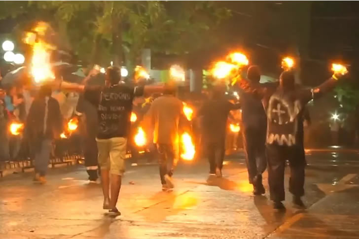 During the Fireball Festival in Nejapa, El Salvador, residents hurl flaming balls at each other in a reenactment of a volcanic eruption and a battle between good and evil. Participants soak their fireballs in kerosene and ignite them before charging into fire fights that light up the night sky.